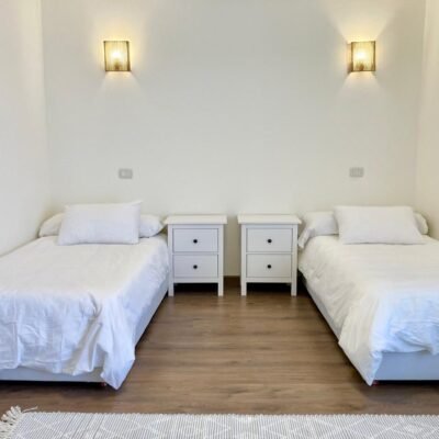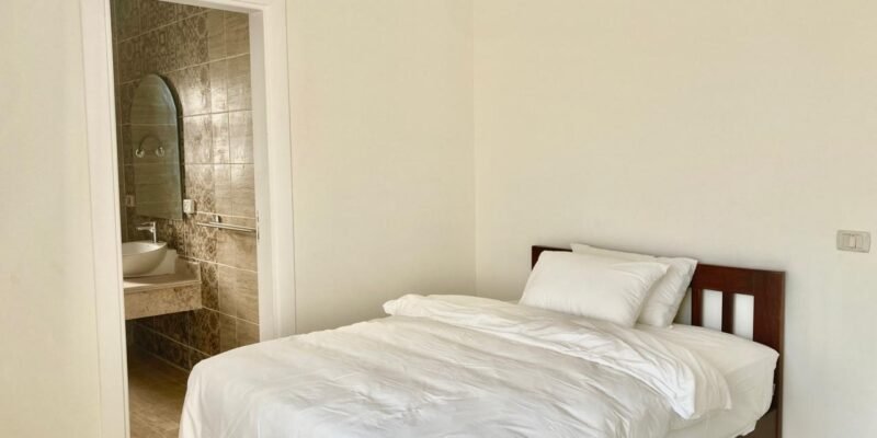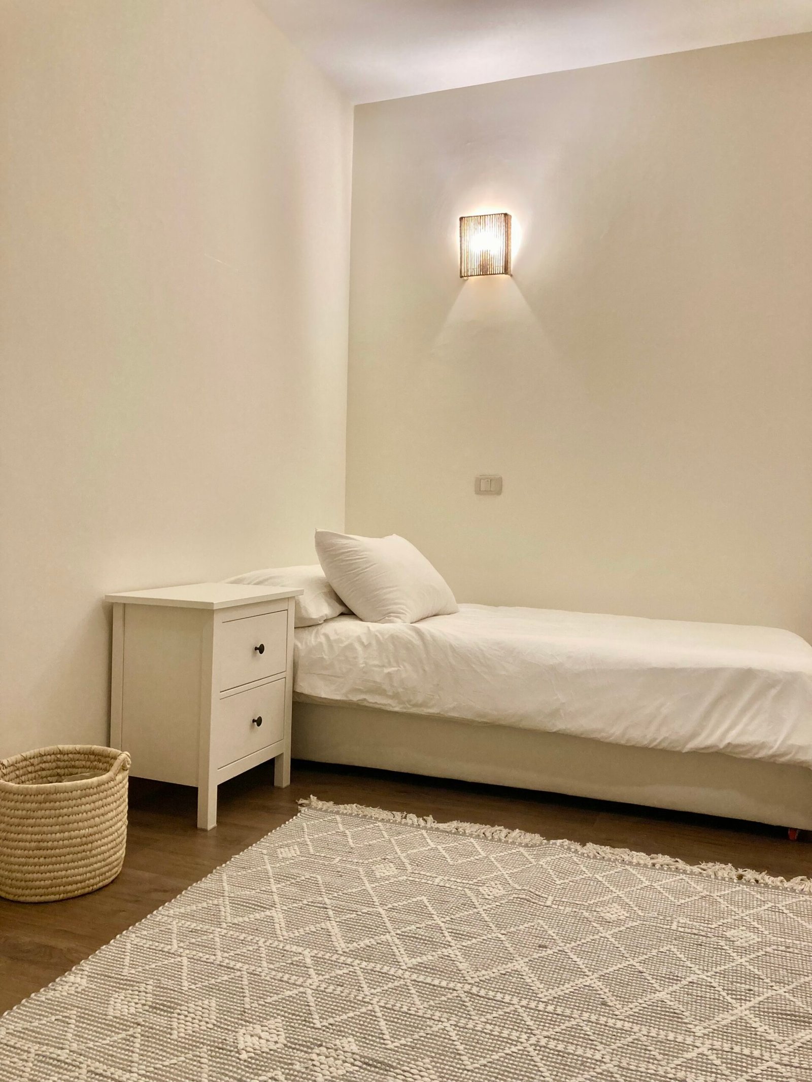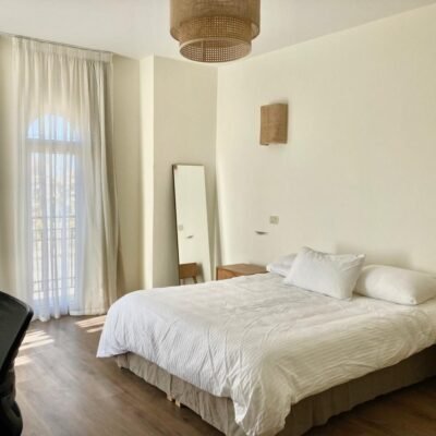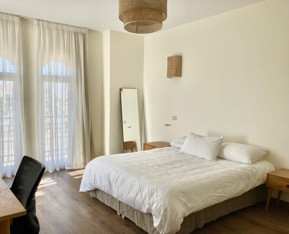 4 spacious bedrooms, including a master suite with a private bathroom and balcony. Air conditioning and light shades installed — RENT or BUY Bedroom Interiors and AC